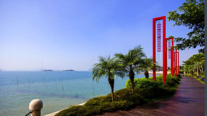 在馬鑾灣南岸,新陽大道北側(cè)東段岸線正在建設帶狀公園,帶狀公園長約2公里,平均寬度100米,面積20.06萬平方米,此前預計工期為8個月,總投資8216萬元,按功能分觀景平臺休閑區(qū)、沙灘游樂區(qū)、自然生態(tài)林區(qū)。公園通過植物葉、花、果形狀和色彩的季節(jié)變化,呈現(xiàn)不同的季相景觀,營造四季“花林”的豐富視覺美感,“花林”同時還能發(fā)揮“沿海防護林”作用,有效減緩來自外灣的風力。