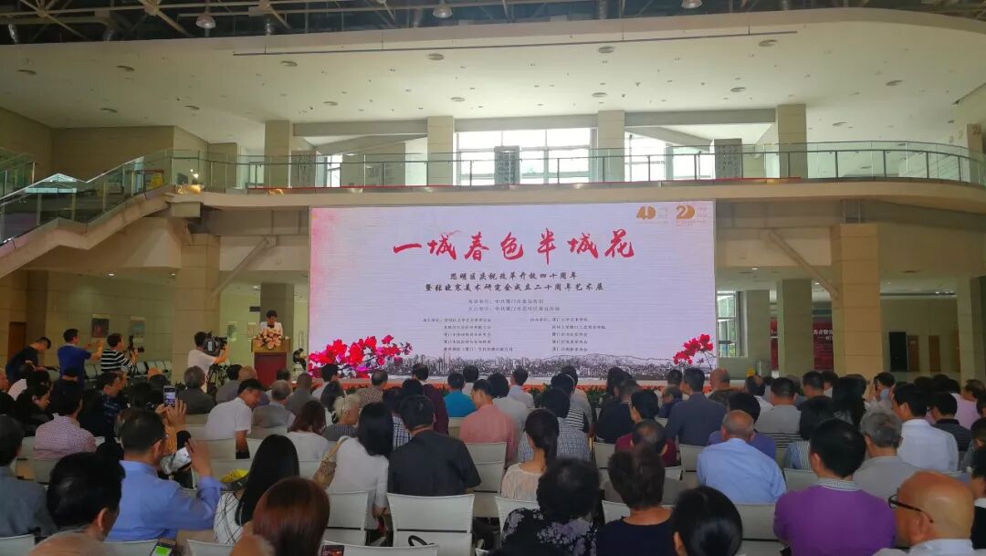 在5月4日上午舉行的開幕式上,近五百名市民、參展藝術(shù)家或家屬與廈門市、思明區(qū)以及兄弟單位的嘉賓們齊聚一堂,共同感受思明區(qū)改革開放40年來的最強文藝之聲。思明區(qū)委副書記張劍鳴在開幕式上表示,伴隨著改革開放的春風(fēng),作為廈門中心城區(qū)的思明區(qū),秉持著“愛拼才會贏”的精神狀態(tài)和工作韌性,艱苦奮斗、積極探索、創(chuàng)新創(chuàng)業(yè),以經(jīng)濟(jì)社會飛速發(fā)展的輝煌成就,展現(xiàn)了廈門經(jīng)濟(jì)特區(qū)作為全國改革開放的實驗田和窗口的積極作用。