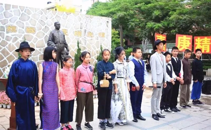 紀(jì)念活動上,一臺由濱水學(xué)校學(xué)生們自編自導(dǎo)的陳嘉庚興學(xué)舞臺劇,吸引了往來游客的目光。孩子們把內(nèi)心里對嘉庚爺爺?shù)臒o比敬謂之情,通過生動的表演,向來自五湖四海的游客傳播出去。