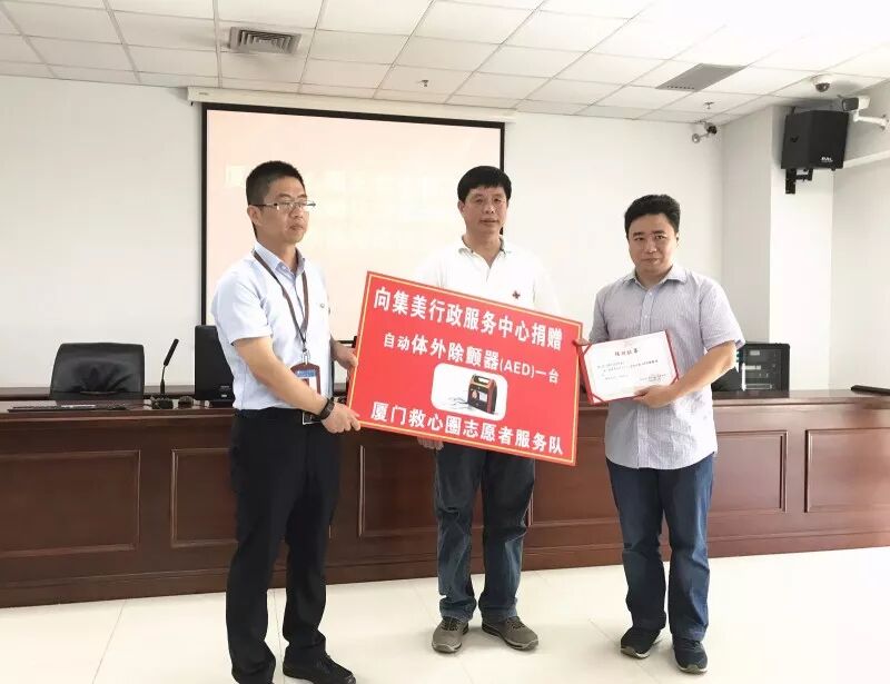活動(dòng)現(xiàn)場(chǎng),除捐贈(zèng)儀式外,最重要的是對(duì)行政服務(wù)中心工作人員進(jìn)行了AED操作培訓(xùn)。