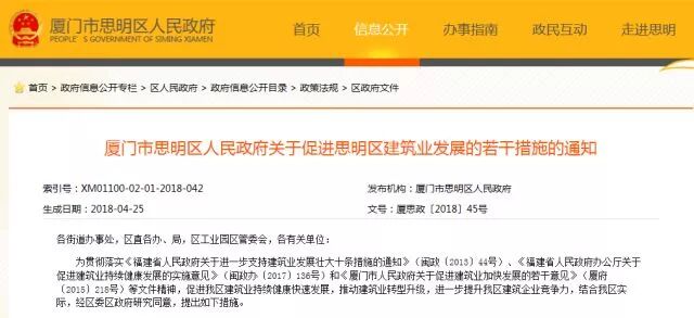 為促進(jìn)思明區(qū)建筑業(yè)持續(xù)健康快速發(fā)展,推動(dòng)建筑業(yè)轉(zhuǎn)型升級(jí),進(jìn)一步提升我區(qū)建筑企業(yè)競(jìng)爭(zhēng)力,日前,《廈門(mén)市思明區(qū)人民政府關(guān)于促進(jìn)思明區(qū)建筑業(yè)發(fā)展的若干措施的通知》(廈思政[2018]45號(hào))正式印發(fā)。