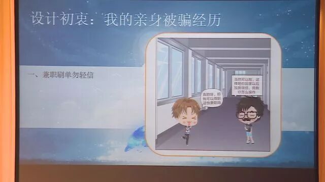 為有效遏制涉校虛假信息詐騙案件的多發(fā)態(tài)勢,活動現(xiàn)場,思明公安分局與區(qū)教育局聯(lián)合廈門大學(xué)開展警校聯(lián)動安全教育活動之防騙金點子大賽。參賽者根據(jù)真實經(jīng)歷或案例,將防詐騙點子以漫畫或動畫呈現(xiàn),加以講述,引起大學(xué)生重視,進一步加強對在校生的防騙宣傳教育。