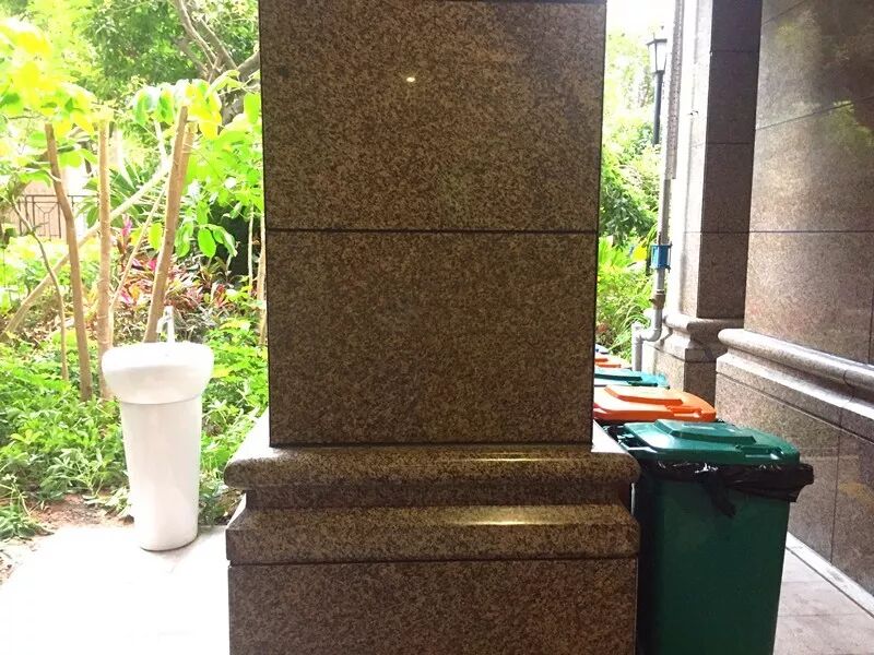▼垃圾桶邊設(shè)置洗手池,小舉措溫馨又便民。