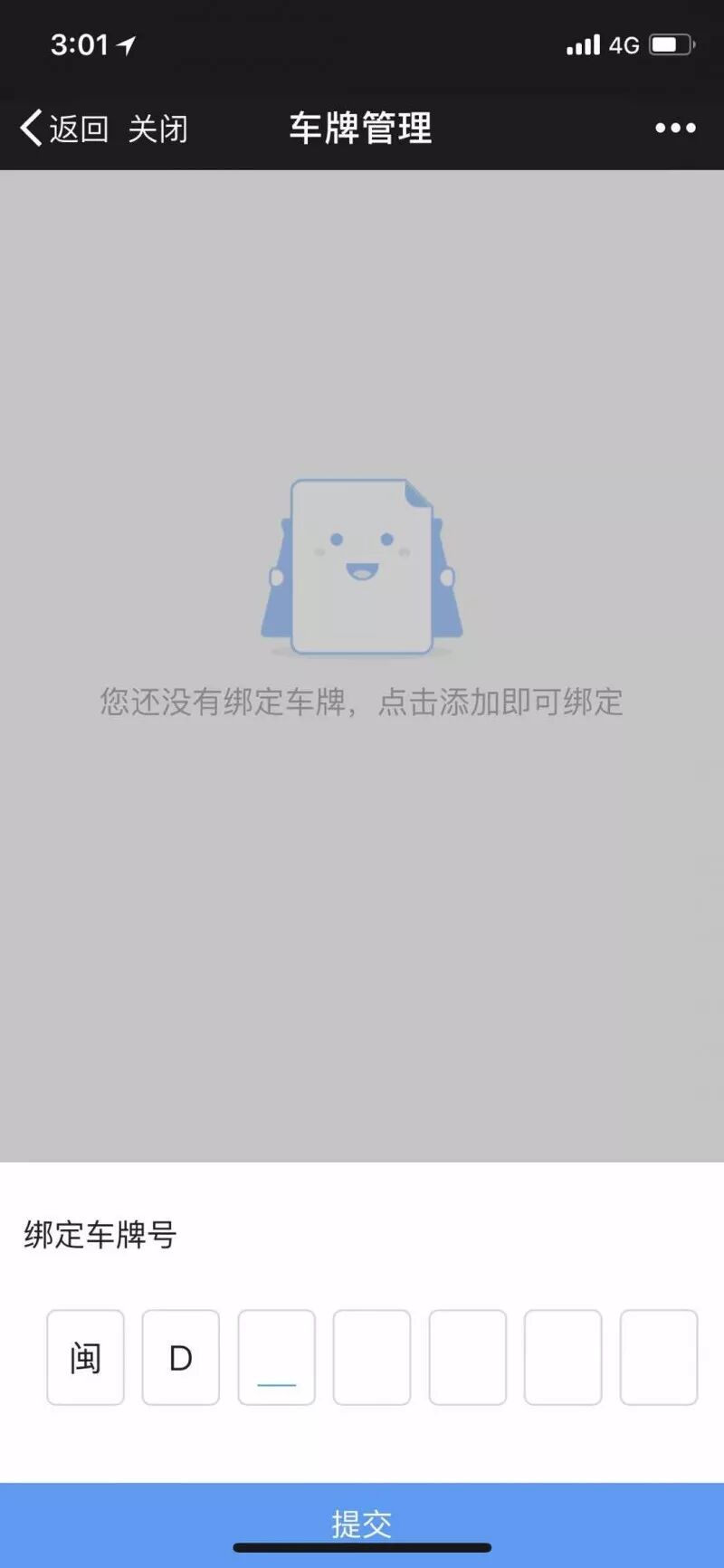 第三步:點(diǎn)擊個(gè)人中心車牌管理,輸入車牌并綁定;