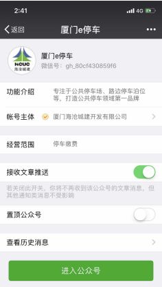 第一步:通過微信搜索并關(guān)注“廈門e停車”微信公眾號(hào);
