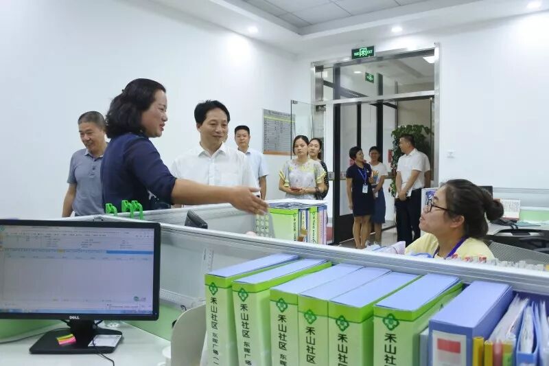 林建書記一行向社區(qū)工作人員了解社區(qū)管理體制改革試點(diǎn)后社區(qū)工作者服務(wù)居民的情況,為社區(qū)工作者的精氣神點(diǎn)“贊”。