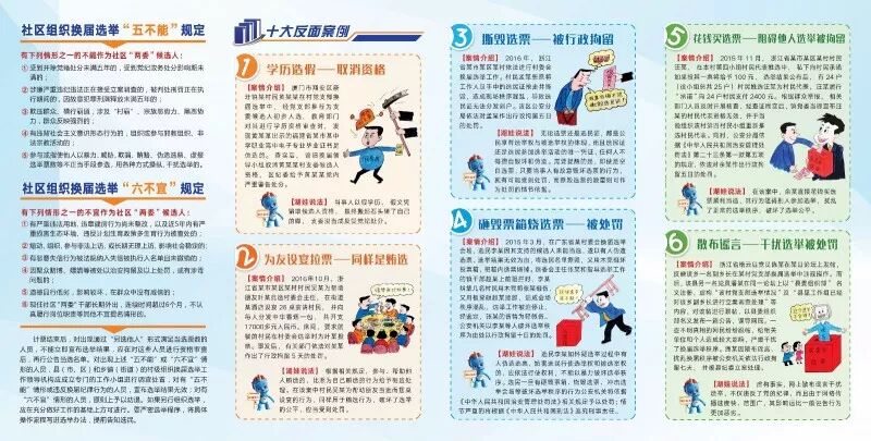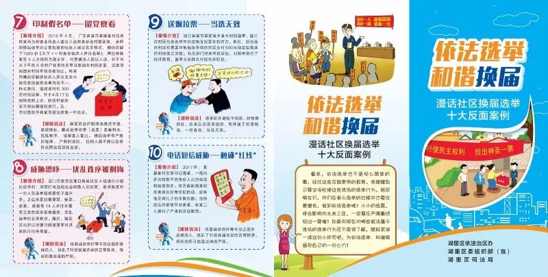 這些取材自真實案例的原創(chuàng)材料,收錄了我市社區(qū)組織換屆選舉“五不能”“六不宜”等新規(guī)定,并“漫話”了十六個反面案例。這些案例短小精悍,由湖里區(qū)草根普法達(dá)人徐新濟(jì)原創(chuàng)漫畫配圖,涵蓋了社區(qū)換屆選舉中主要的違規(guī)違法行為及處罰措施,受到社區(qū)工作者和閱讀群眾的好評。