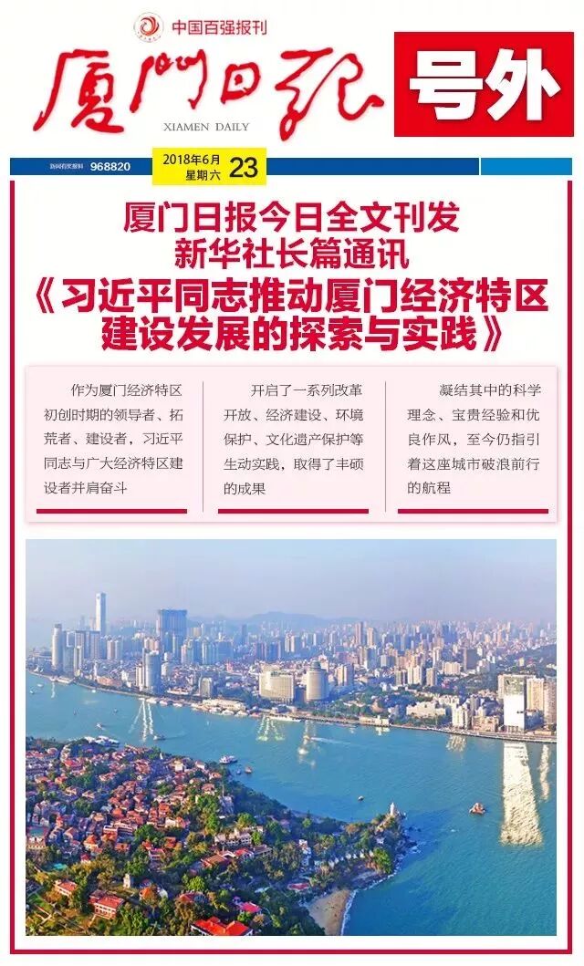 6月22日,新華社播發(fā)長篇通訊《習近平同志推動廈門經(jīng)濟特區(qū)建設發(fā)展的探索與實踐》。