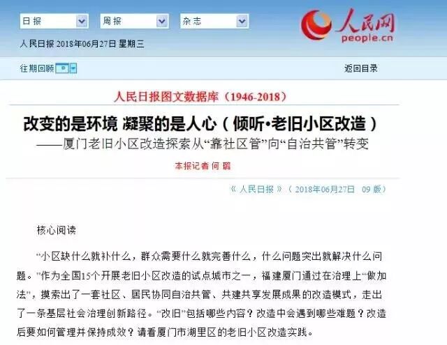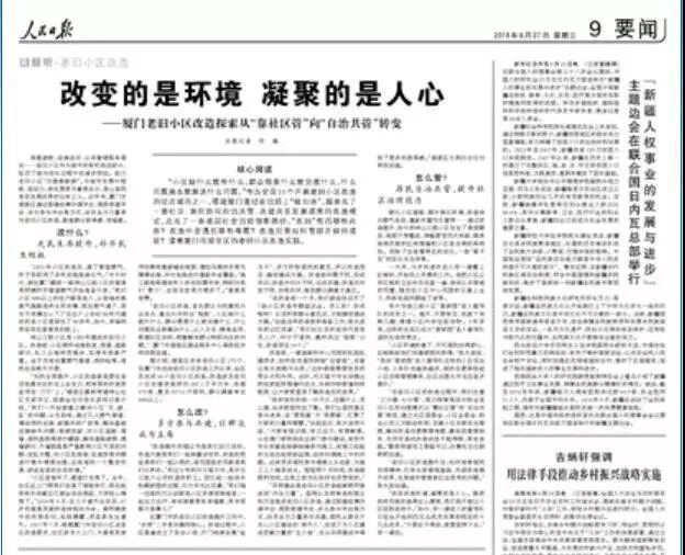 近日,《人民日報(bào)》推出專題新聞,頭條報(bào)道了湖里區(qū)老舊小區(qū)的改造實(shí)踐成果。該報(bào)道深入介紹了湖里區(qū)殿前街道神山三航小區(qū)的改造工作,展現(xiàn)湖里區(qū)探索老舊小區(qū)改造的經(jīng)驗(yàn)與成效。