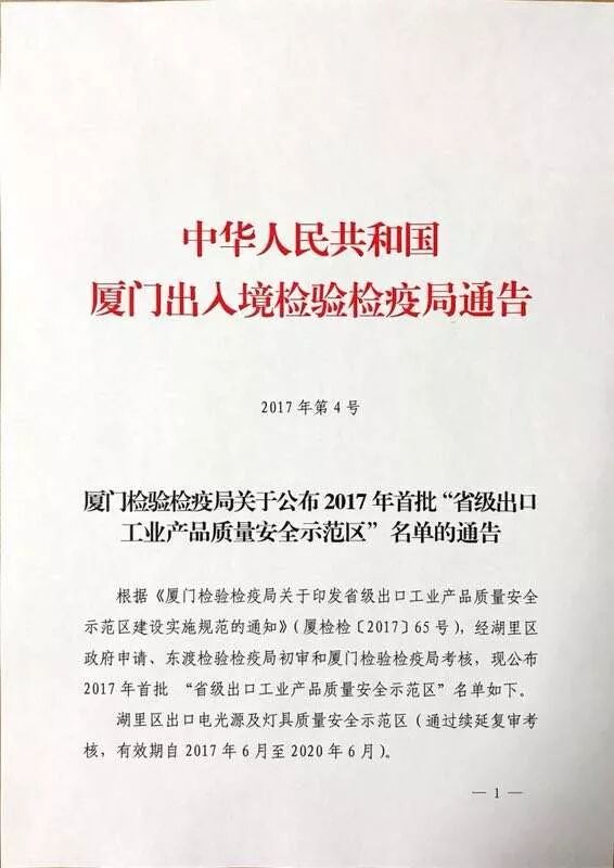 ?湖里區(qū)已成為我國出口電光源及燈具生產(chǎn)企業(yè)的主要聚集區(qū)之一,生產(chǎn)和出口規(guī)模僅次于廣東和浙江。2017年湖里區(qū)通過“省級出口電光源及燈具質(zhì)量安全示范區(qū)”復(fù)核。