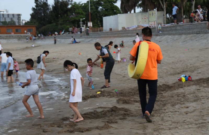 他們身著橙色T恤或紅色馬甲、肩披“香蕉皮”救生板、手持?jǐn)U音小喇叭、脖子上掛著望遠(yuǎn)鏡,腰上揣著對講機......他們?nèi)蔽溲b,目光緊隨海面動態(tài),而且最愛盯梢海邊的落單兒童。