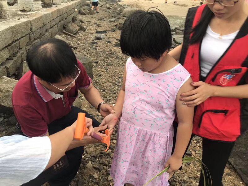 一名8歲女孩,和玩伴獨自在海角九號海灘戲水,被石塊絆倒并割傷了手掌及大腿。他們立刻上前為其清洗傷口,并幫其找到了監(jiān)護(hù)人。