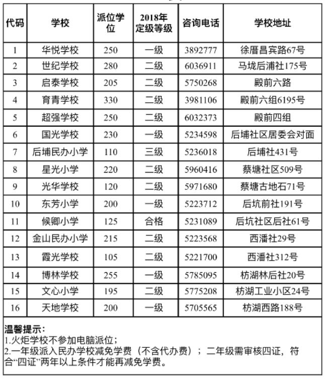 2018秋季湖里區(qū)民辦小學(xué)積分入學(xué)信息一覽表