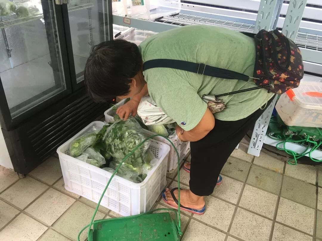 早上8:30,居民林汝鈿騎著自行車來到位于龍虎南二里鷺悅小區(qū)內(nèi)的餐廚垃圾置換蔬菜點。老林將自己花了四五天發(fā)酵好的廚余垃圾,交給置換點的工作人員,兌換了一袋新鮮的卷心菜。