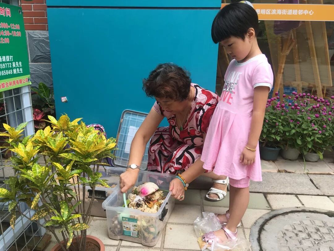 一層廚余垃圾,一層菌糠,王姝黠熟練地操作,孫女在一旁不時“指點”。“換蔬菜不是主要目的,大家熱心參與垃圾分類才最重要,還能讓孩子一起學(xué),真好!”