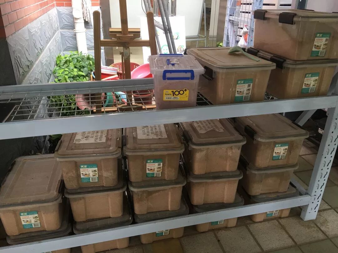 ▼干凈的空發(fā)酵箱和菌糠,便利居民取用