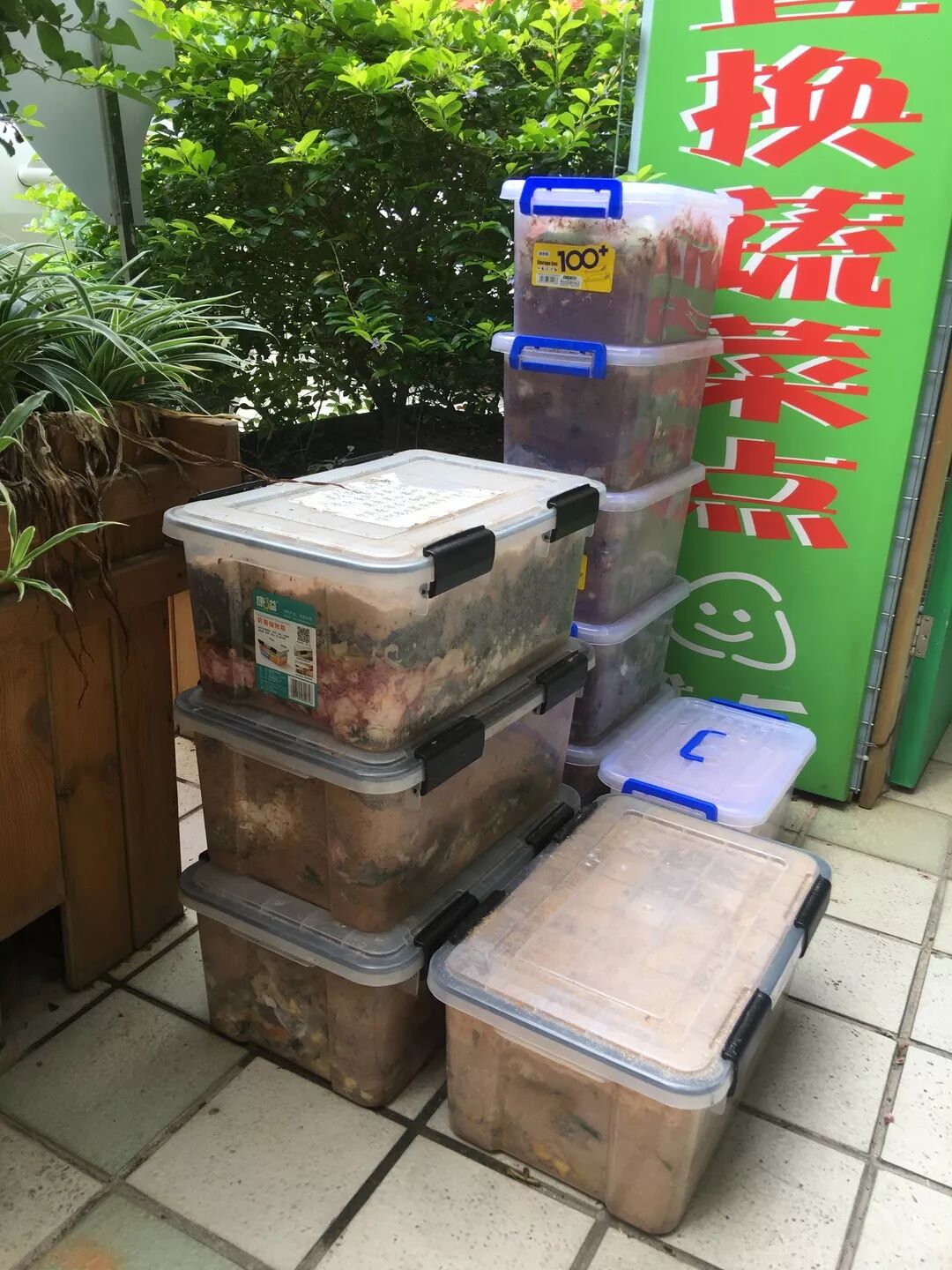64歲的居民王姝黠,帶著4歲半的小孫女,將家中的廚余垃圾直接拿到置換點進(jìn)行現(xiàn)場發(fā)酵,“我們家廚房比較小,沒地方再放個發(fā)酵箱,所以直接帶到這兒來處理,兩三天裝滿一個小箱子,也能換蔬菜。”