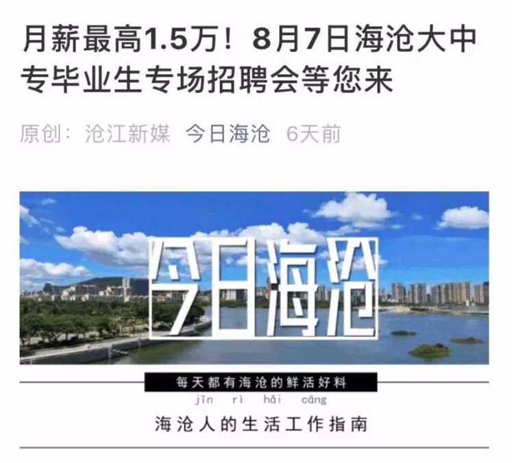 截至昨日,“海滄就業(yè)”、“今日海滄”等公眾號(hào)閱讀人次已達(dá)11185人次。其中,僅8月1日在“今日海滄”發(fā)布的招聘會(huì)信息,就有近6000的閱讀人次。