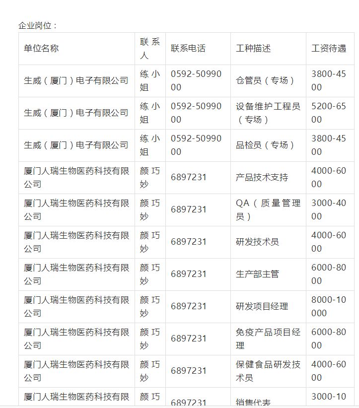▲“海滄就業(yè)”今日發(fā)布的崗位信息截圖