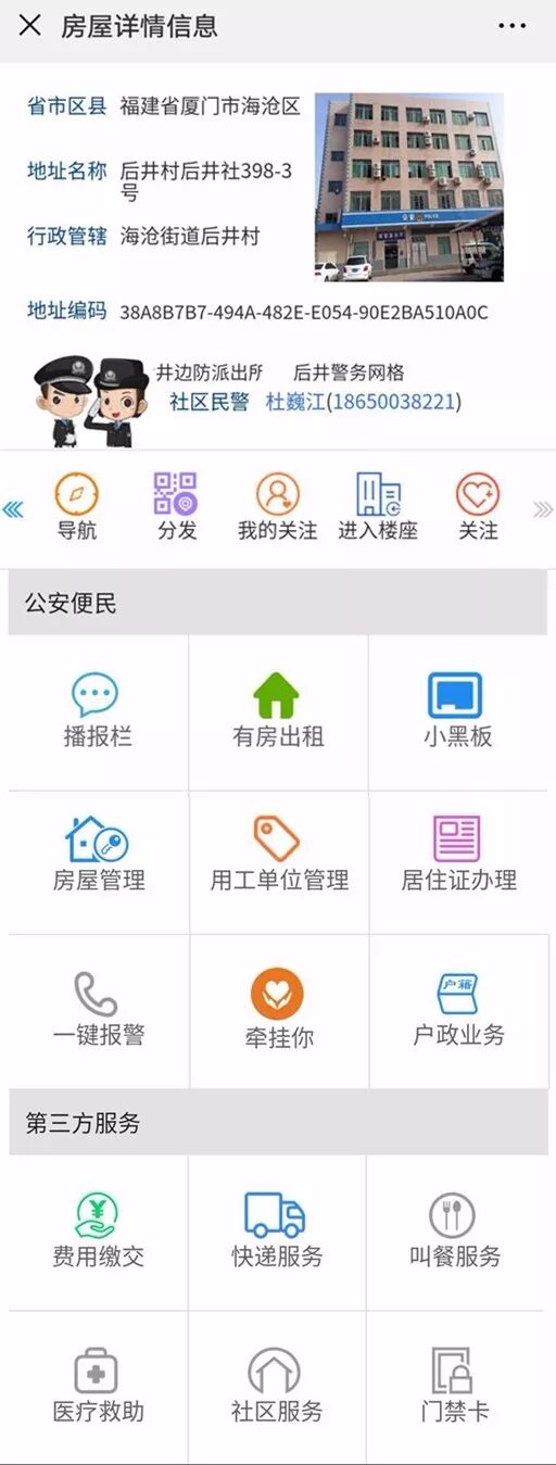 群眾可以查看到房屋地址所在警務(wù)網(wǎng)格和社區(qū)(駐村)民警的姓名、相片、聯(lián)系方式等信息。