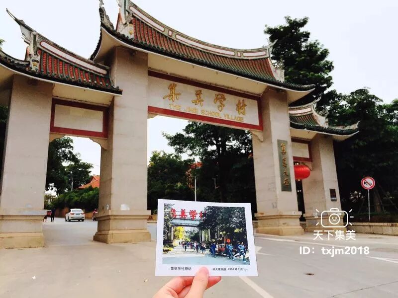 ▲照片中一群穿著藍(lán)白相間校服的學(xué)生奔跑著,80年代的集美學(xué)村充滿活力,學(xué)村坊門曾是掛著渾厚的紅色鐵制烤漆“集美學(xué)村”四個(gè)大字,現(xiàn)在的學(xué)村大門更顯典雅莊重,琉璃瓦頂燕尾脊下由廖承志題寫的燙金大字“集美學(xué)村”閃閃發(fā)光。