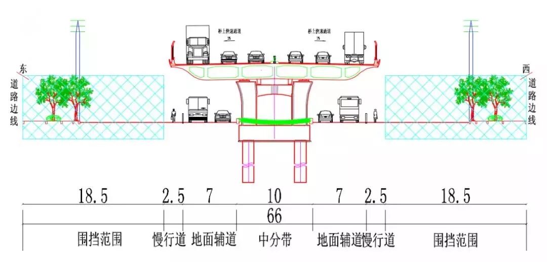 交通疏解措施:高架雙向6車道通行,地面輔道雙向4車道通行。