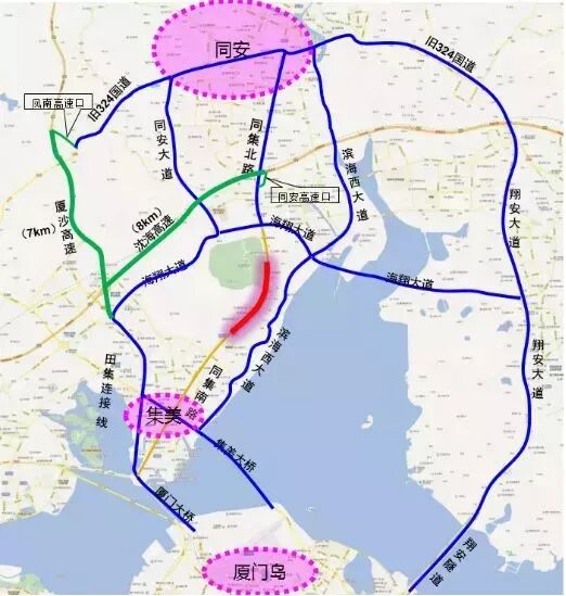 ① 廈門大橋(集美大橋)-田集連接線-海翔大道-同安大道(同集北路);