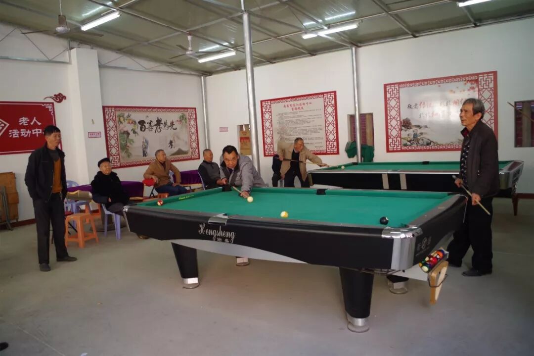 兩層小樓,設置有圖書閱覽室、殘疾人康復室、餐廳、廚房和衛(wèi)生間等,一張張臺球桌、麻將桌、茶桌整齊鋪開。