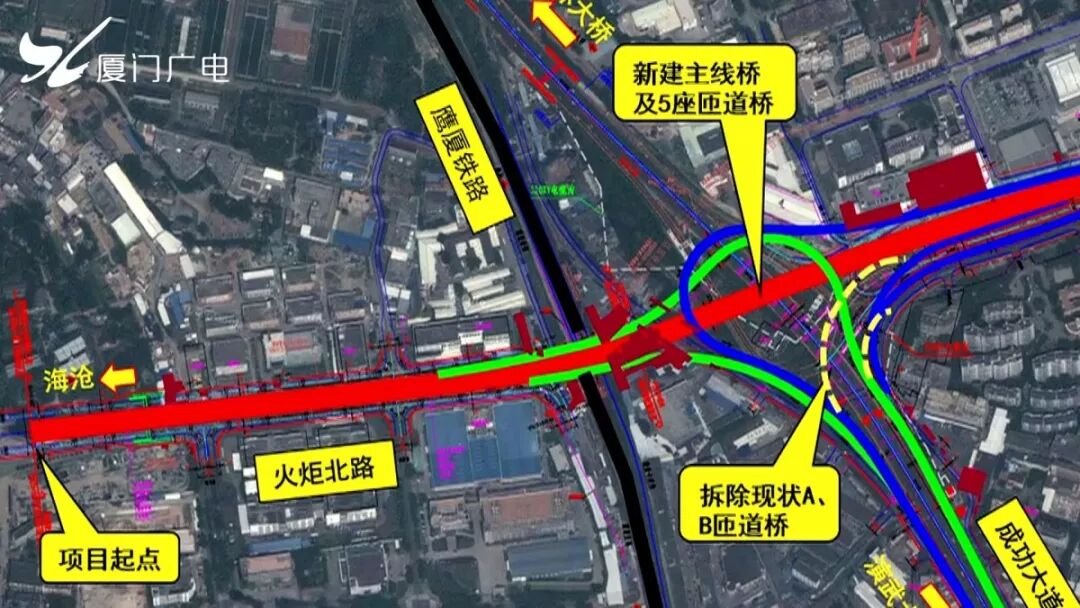 成功大道機(jī)場立交提升改造是第二西通道——海滄隧道本島端接線工程的重要組成部分,由于接線工程與成功大道交匯,2015年10月,廈門路橋建設(shè)集團(tuán)先行啟動(dòng)對這個(gè)未來交通樞紐的改造,一方面對舊匝道進(jìn)行提升改造,一方面增建新的匝道橋。