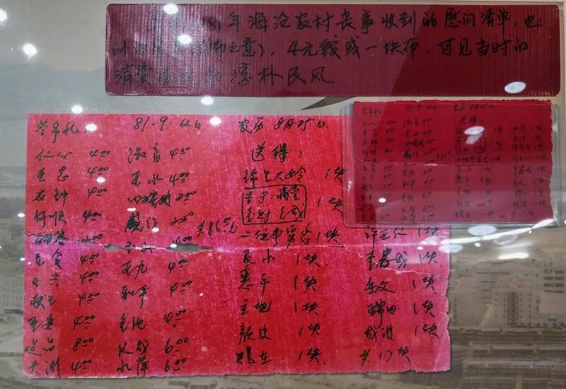 甚至還保存有當(dāng)時白事的禮單,上面登記得清清楚楚:禮金4塊錢或者是一塊布!