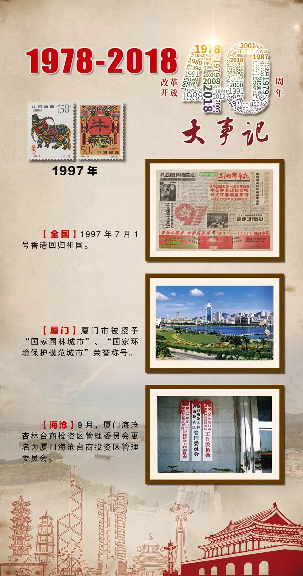 大事記部分精選國家、廈門、海滄這40年來值得我們?nèi)セ匚?、思考的點滴,希望我們汲取力量,繼往開來,在未來的40年開拓創(chuàng)新,實現(xiàn)中華民族的偉大復(fù)興!