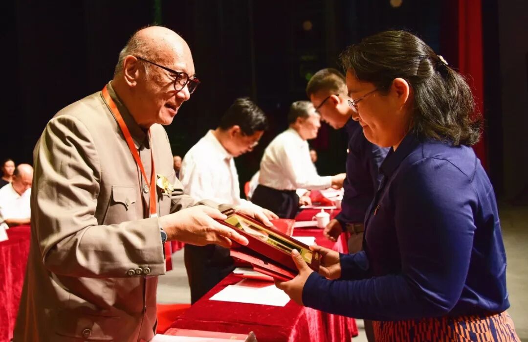 (圖/陳嘉庚先生長孫陳立人向年度集美學(xué)村突出貢獻(xiàn)獎(jiǎng)老師頒獎(jiǎng))