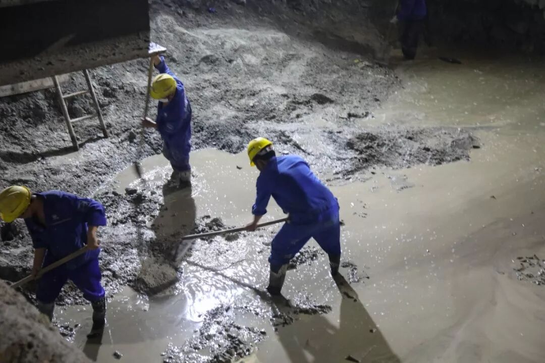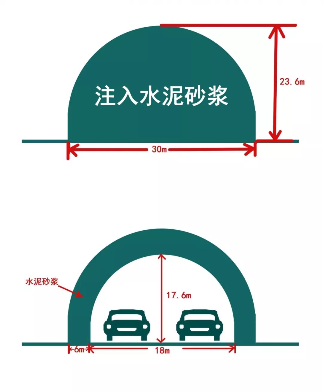 如何解決難題,工程師們要在寬30米、高23.6米的拱形界面上注入水泥砂漿,等水泥砂漿凝固,地質(zhì)層有了自穩(wěn)能力再行掘進。