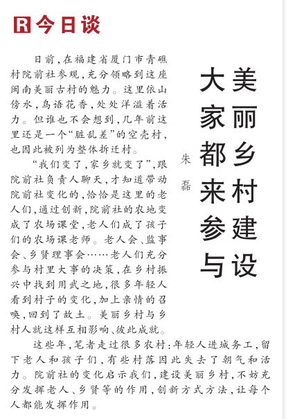 作者是人民日?qǐng)?bào)寧夏分社采編部主任朱磊,他來廈門,慕名到海滄來實(shí)地散心走一走??吹角嘟复逶呵吧绲拿利愢l(xiāng)村建設(shè),高顏值、高素質(zhì)的海滄底色打動(dòng)了他。他是有感而發(fā),以一個(gè)普通外地游客的身份點(diǎn)贊大魅力海滄。