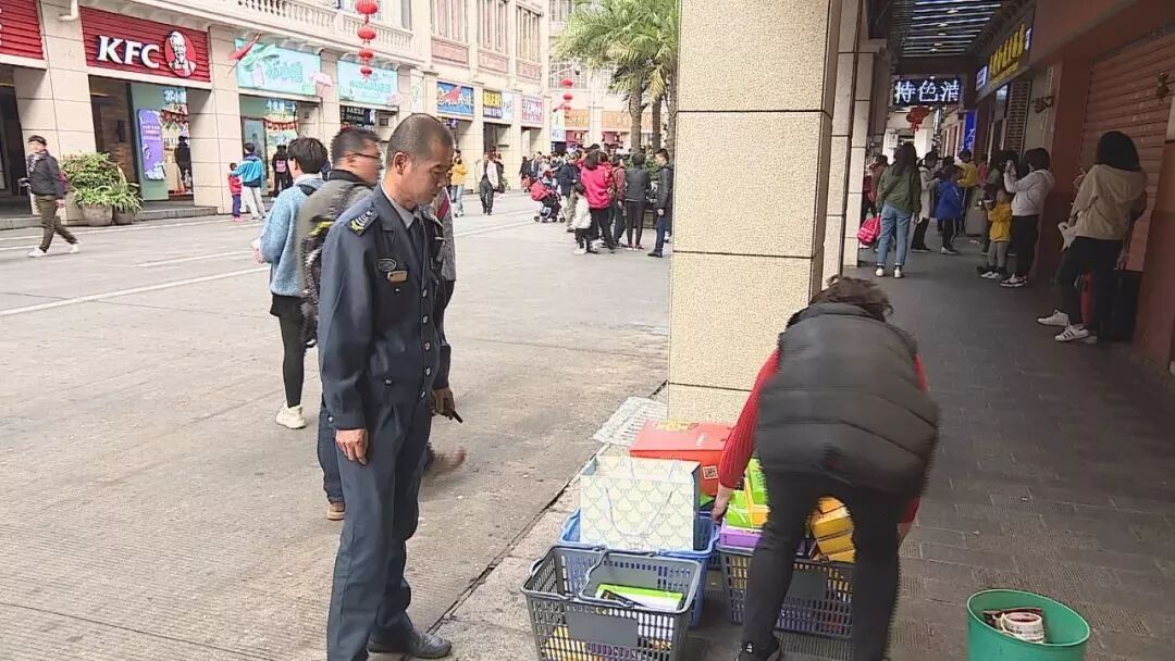 鄭合成是中山路商圈巡查隊(duì)骨干,消防安全巡查、治安巡邏、占道經(jīng)營(yíng)勸導(dǎo)都是他的日常工作,巡邏間隙,看到店面門(mén)口堆放紙箱的,鄭合成馬上過(guò)去讓老板收起來(lái)。