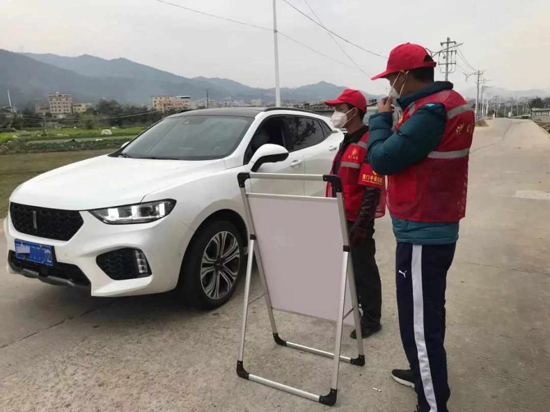2月6日下午,在田頭村洋坑社入口,田頭村志愿者們正配合交警、交通等部門對(duì)來往車輛及行人進(jìn)行檢查。