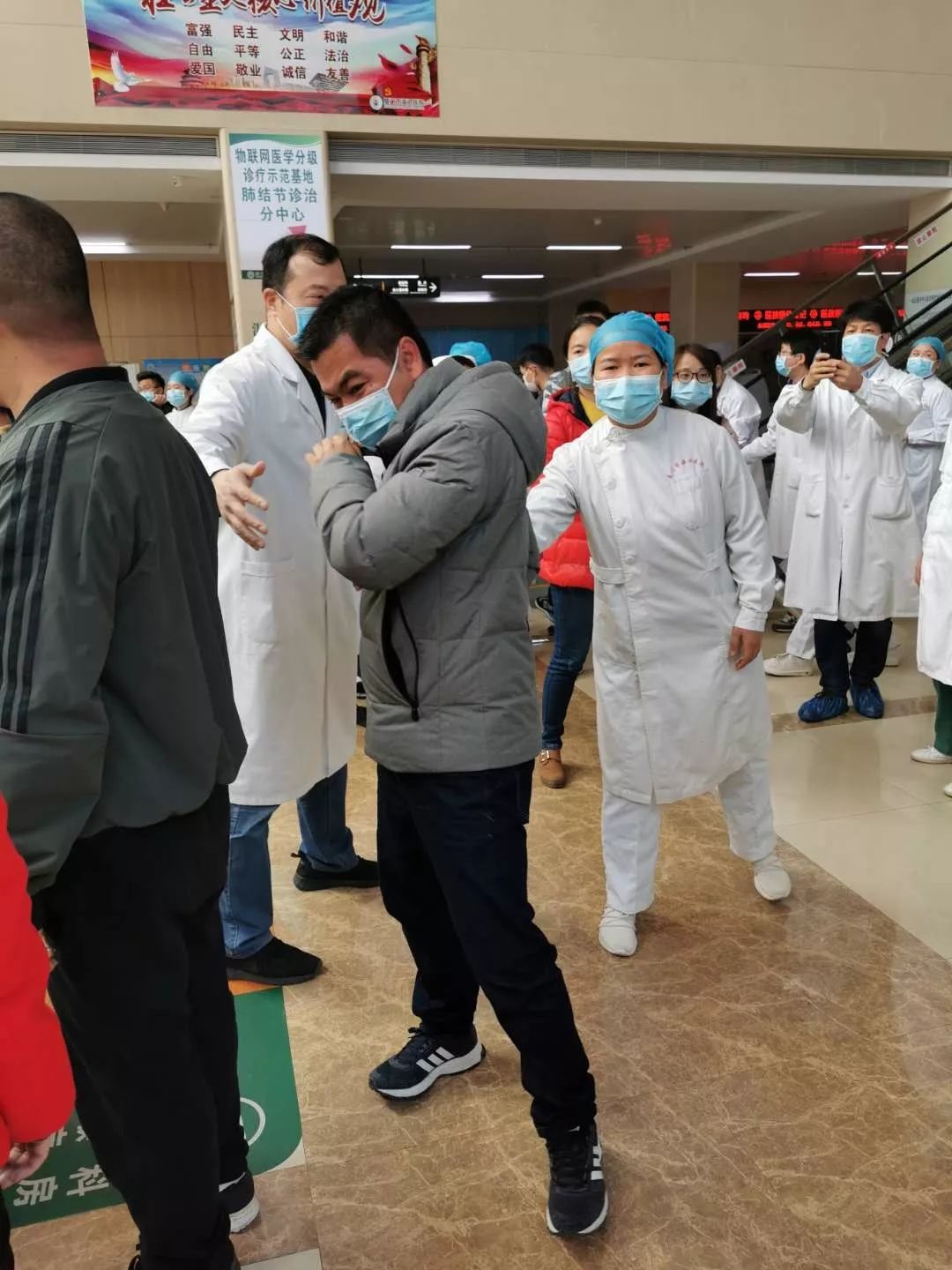 來海滄醫(yī)院就診的群眾也參與送行,大家都大聲喊著:“加油、平安!”
