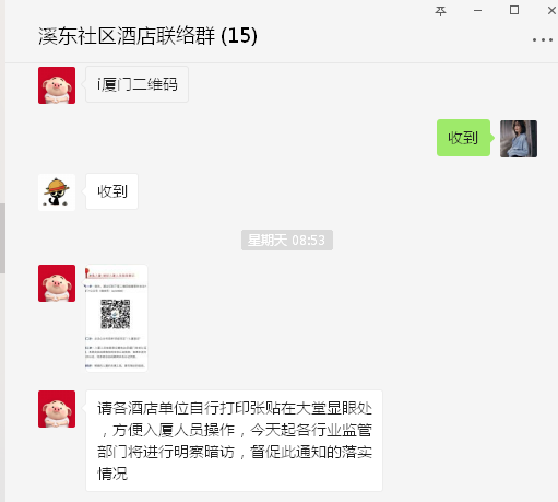 ▲社區(qū)與酒店組建“溪東社區(qū)酒店聯(lián)絡(luò)群”