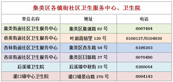 詳細信息請咨詢各鎮(zhèn)街社區(qū)衛(wèi)生服務中心、衛(wèi)生院