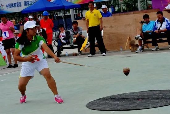 陀螺在少數民族中流傳已久,陀螺大小不一,打法多樣,是少數民族運動會極有特色的競賽項目。打陀螺比賽極具觀賞性,運動員矯健的身姿、優(yōu)美的動作,體現出自身的技巧和平日訓練的功底。