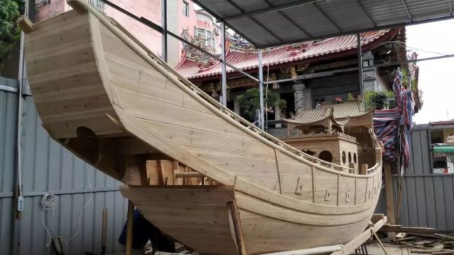“造王船”:用杉木來(lái)造木舟,請(qǐng)專(zhuān)業(yè)的木匠師傅,在瀾海宮觀音廟里操作造王船。