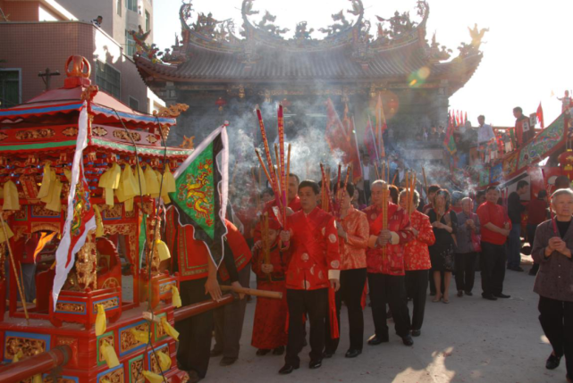 “送王船”:當(dāng)天早上,王船巡游,王船從瀾海宮觀音廟出發(fā)沿著環(huán)村路巡游社內(nèi)17個(gè)香位其中的大部分香位,在鐘宅巡游也叫“吃香位”。