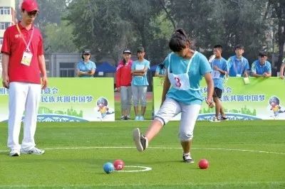 蹴球源于清代的踢石球。蹴球比賽分兩隊進行,每隊兩名運動員。比賽時腳跟著地,腳掌觸球,用力蹴球。擊中對方球,得1-2分,把對方球擊出場外得4分,先積80或100分者為勝方,三局兩勝。