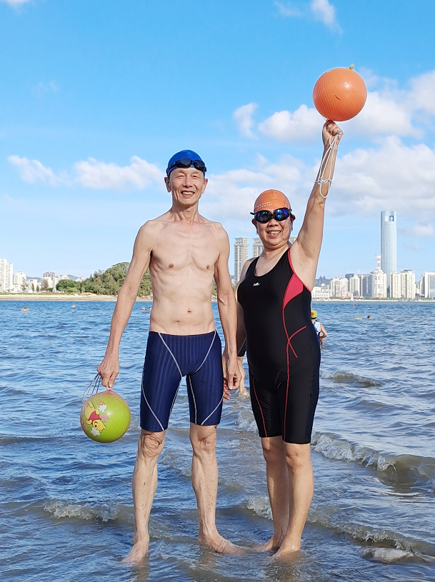 已經(jīng)在海滄定居多年的兩夫妻,在運動中也培養(yǎng)出了更多默契。林致平的太太雖然較少跑步,但兩人常常一起海游。