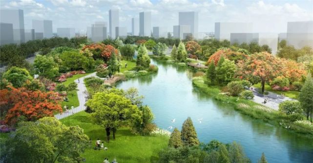 環(huán)灣岸線設計具有四季特征的觀賞性植物相互搭配,春夏秋冬,季季都有不同的特色景觀。