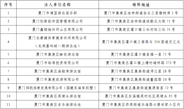 集美區(qū)首批游泳場(chǎng)所