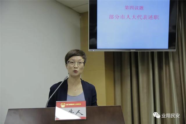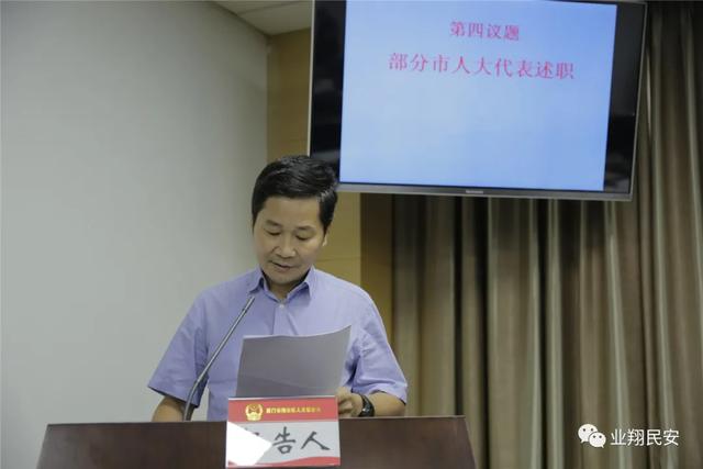 市第十五屆人大翔安代表小組代表向區(qū)人大常委會述職陳琛、張志紅、胡盛等9位代表提交書面述職報告,其中,韓刃、彭玉珊、康天偉3位代表進行口頭述職。