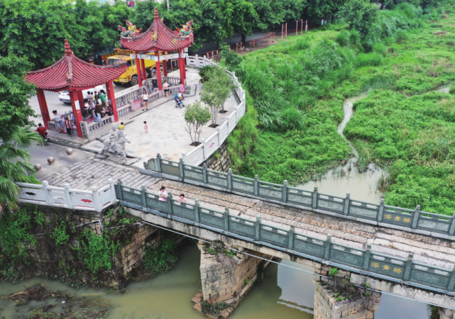 漫步石橋,周圍風(fēng)景旖旎,古榕掩映著層起的屋檐,遠處群山環(huán)繞,默然威嚴(yán)。身后,古驛樓連接著舊時的驛口街,而放眼遠方,新國道蜿蜒前行,旅人不再在此停留,而是匆匆前行,留下一路歡歌。