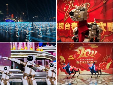 圖1:優(yōu)必選“拓荒牛”四足機(jī)器人登上春晚