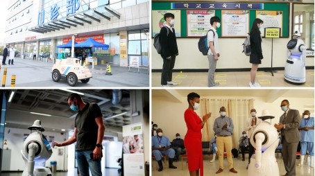 圖4:優(yōu)必選智能防疫機(jī)器人在中國、比利時(shí)、韓國、盧旺達(dá)等國家和地區(qū)落地應(yīng)用